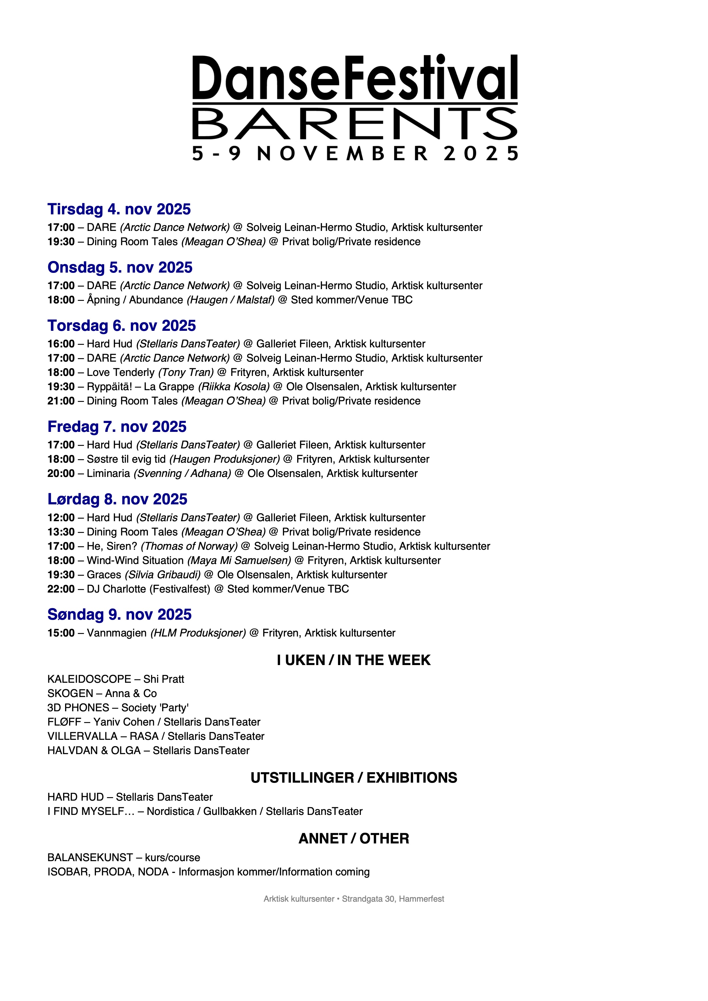 KJØP BILLETTER: Linker i beskrivelsene til forestillinger. Billetter kan også kjøpes via billettluka til Arkstisk kultursenter.